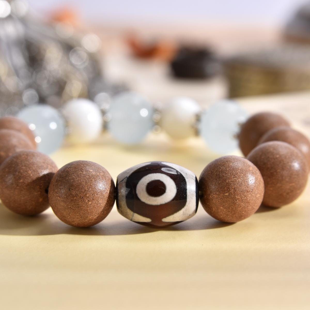 The dzi bead activates the Wenchang energy chain of metal, water, and wood, symbolizing clear thinking and inspiring wisdom.