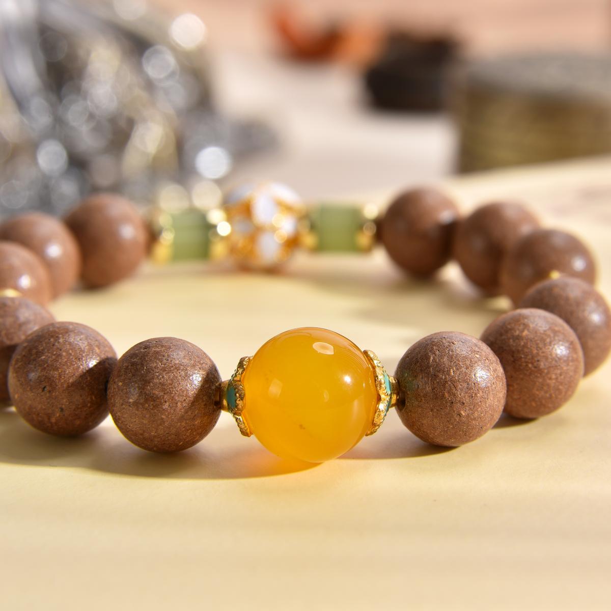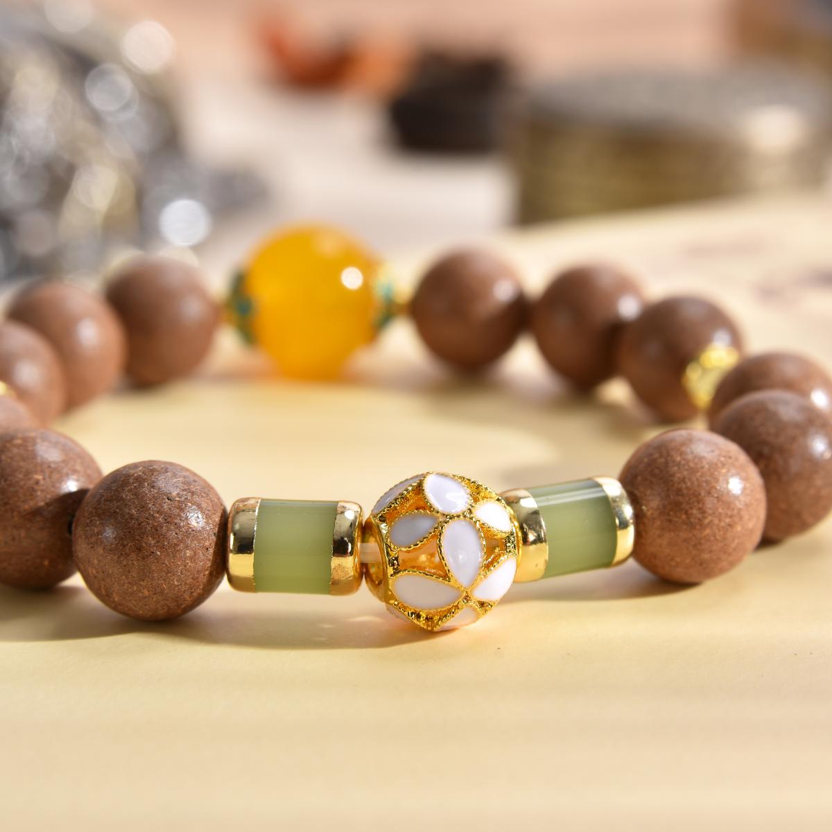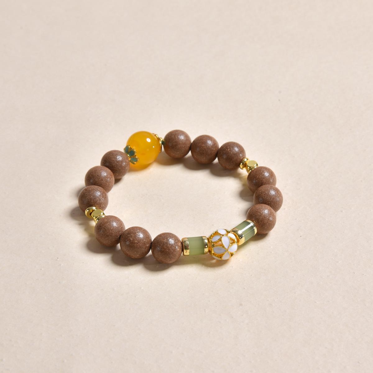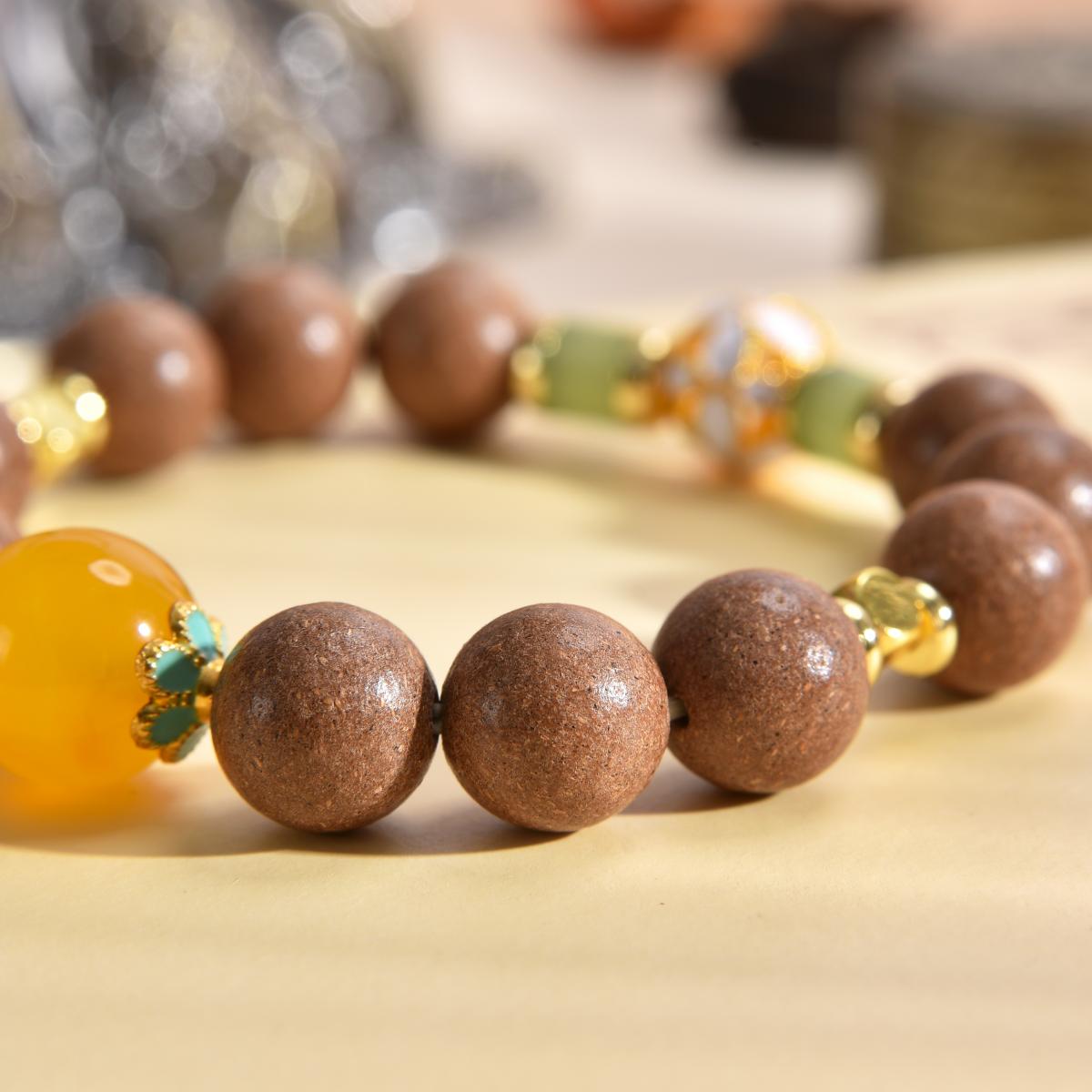 The pairing of mellow brown-gold and warm honey hues is gentle and romantic, symbolizing the harvest and sweetness of love. The earth-wood-metal forms a peach blossom energy chain, attracting romantic prospects while protecting relationships.