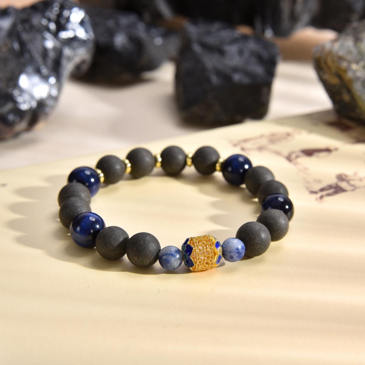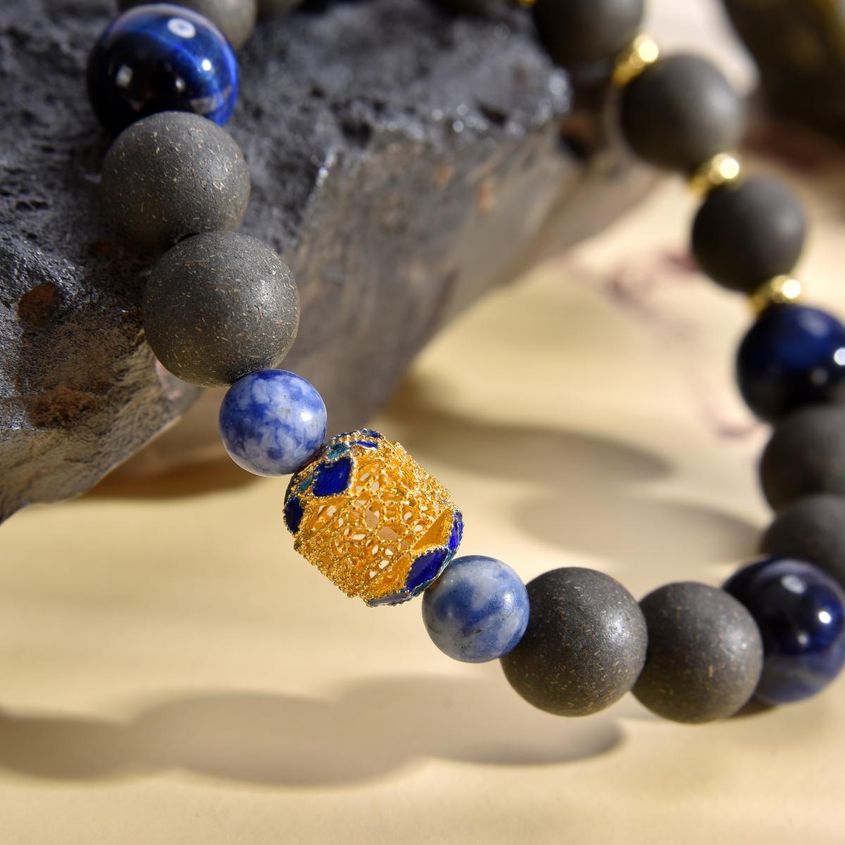 With cloisonné gold ornaments as the guide, the contrast between deep black and royal blue creates a vibrant color dynamic, forming a wealth-energy cycle of "metal begets water"—symbolizing gathering fortune into the treasury and opening up numerous wealth paths.