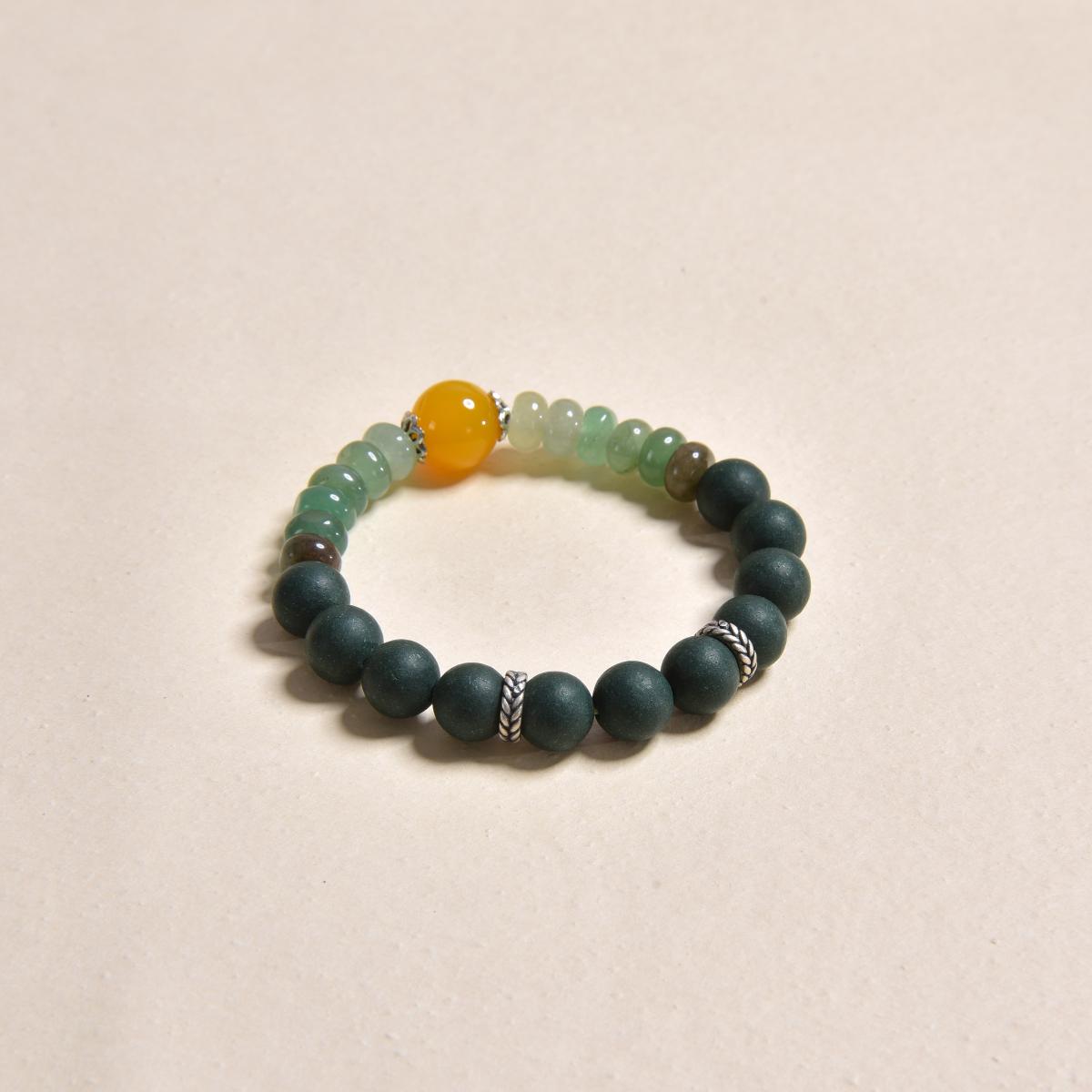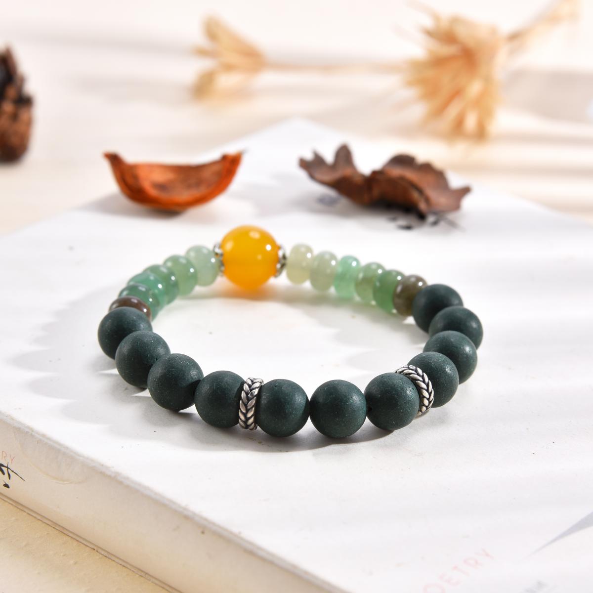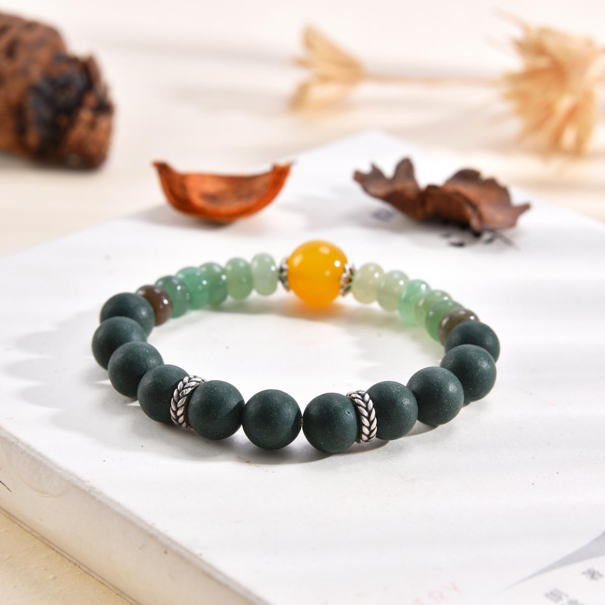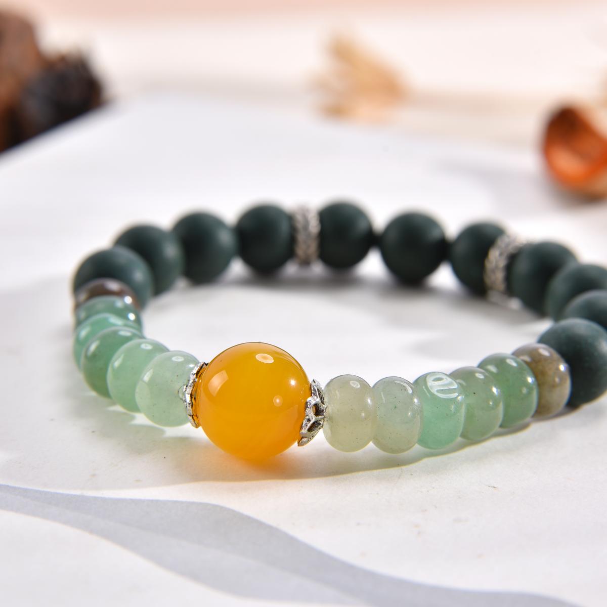 In Eastern Five Elements philosophy, wood fuels fire, generating a continuous, life-giving energy. This design features green chalcedony (symbolizing the wood element and life force) paired with incense-blended beads. Together, they activate the orange amber beads—representing career and wealth—promoting steady career growth and wealth accumulation, and creating a positive energy field that attracts prosperity and good fortune.